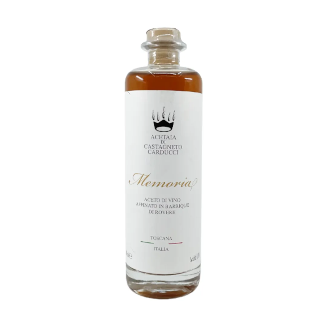 Il “Memoria” è un condimento ottenuto dalla fermentazione acetica del vino e affinato in barrique, botti di rovere precedentemente utilizzate per i migliori vini di Bolgheri e di cui trattengono gli aromi. Memoria viene prodotto con i metodi tradizionali contadini ed è caratterizzato da un sapore autentico.