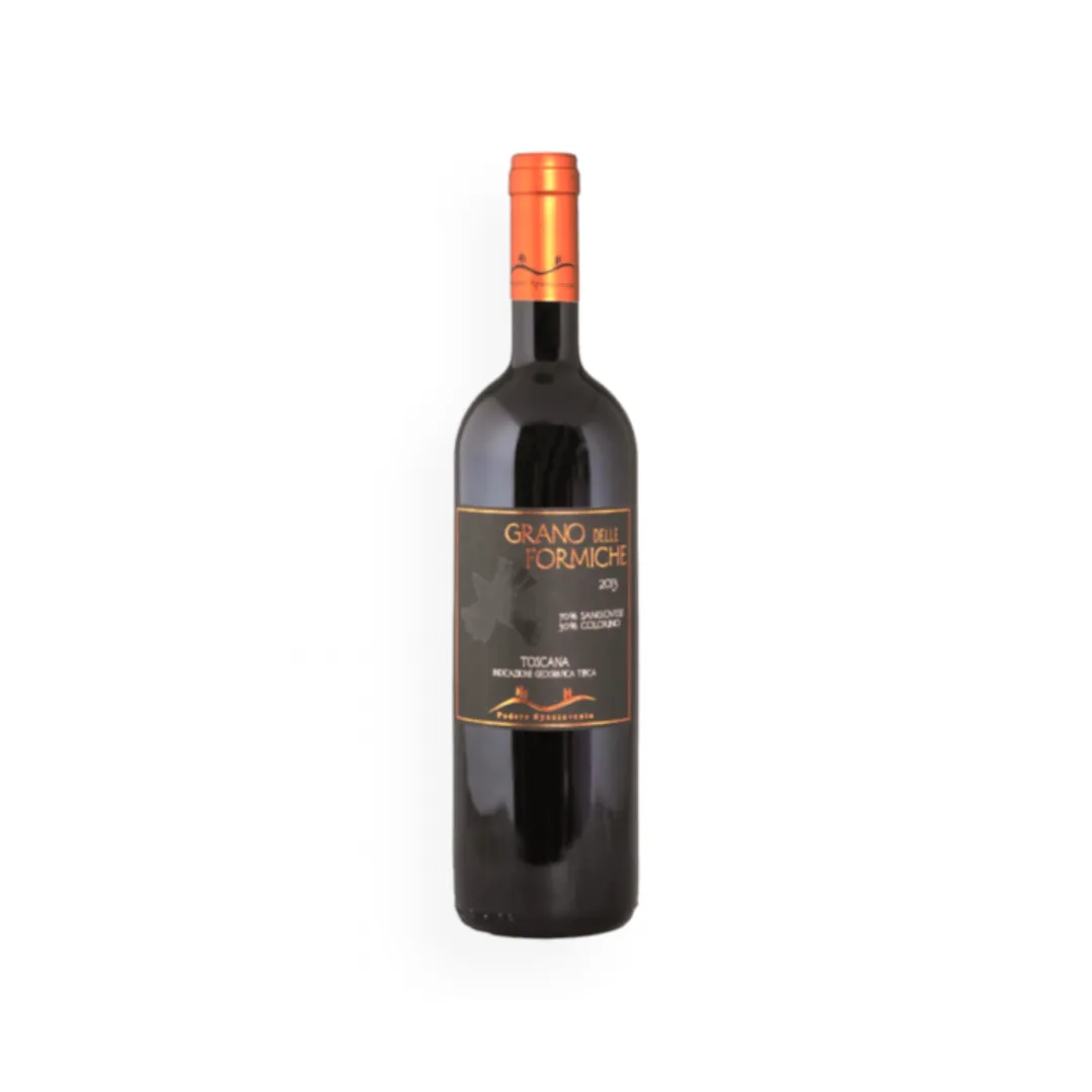 GRANO DELLE FORMICHE I.G.T. viene prodotto con un di Sangiovese e un 30% di Colorino, provenienti esclusiva- mente da un unico vigneto particolarmente vocato. La fermentazione avviene in vasche d’acciaio a temperatura controllata con due rimontaggi giornalieri per tutto il periodo della fermentazione. Dopodichè viene svinato e messo in botti di rovere (barrique) dove svolge la fermentazione malolattica. Quest’affinamento in legno ha una durata di 12 mesi. Il Grano delle Formiche è complesso e intenso in profumo e gusto, molto fruttato e equilibrato.