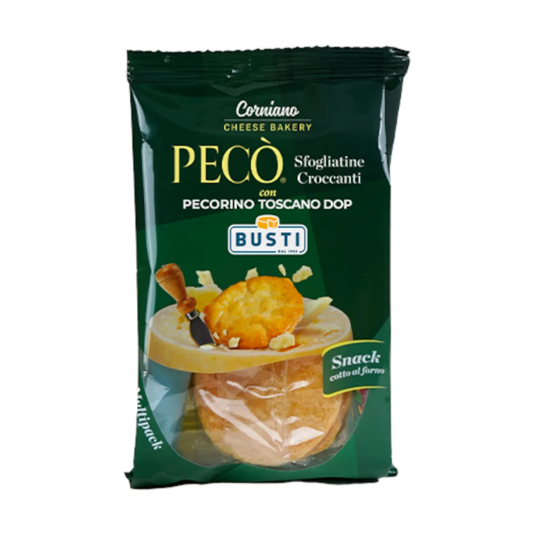 Una croccante sfogliatina ottenuta dalla sapiente combinazione di ingredienti scelti uniti al nostro Pecorino Toscano DOP, lavorata artigianalmente e cotta al forno.