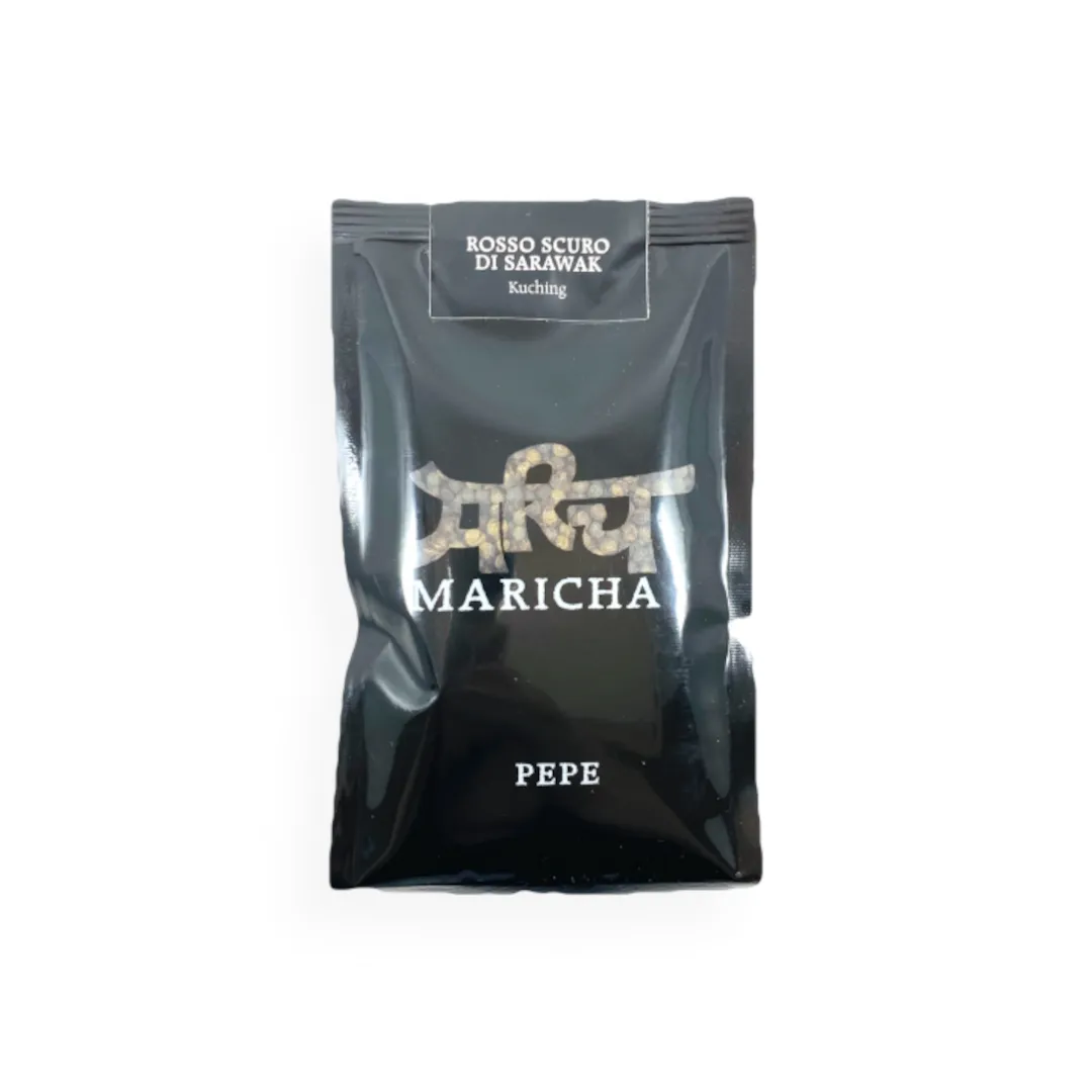 Il Pepe Nero in grani Maricha proviene da Sarawak, parte malese dell’isola del Borneo, l’unico luogo della Terra in cui esistono piante spontanee di pepe. Le bacche di pepe fresco vengono lavate con acqua fredda pulita ed essiccate maniera rudimentale dal Sig. Siew, nelle ventiquattro ore successive alla raccolta. E’ un pepe che non ha eguali al mondo e ridona a questa spezia la propria dignità.